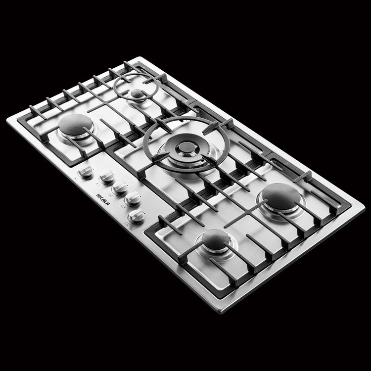 شرکت نیک کالا پس از فعالیت در زمینه تولید بخاری و شومینه گاز سوزاقدام به تولید و عرضه اجاق های توکار یا صفحه ای با رویه استیل نموده که تحت عنوان مدل های "رویال" معرفی گردیده است. این اجاق ها دارای 5 شعله می باشد که عبارتند از: یک شعله پلوپز، دو شعله بزرگ، یک شعله متوسط و یک شعله کوچک که با توجه به نیازهای مختلف مصرف کنندگان طراحی شده است. مهمترین هدف از این تنوع و چیدمان، برآورده کردن کلیه نیازها بر اساس فرهنگ و نوع مصرف کدبانوی ایرانی جهت پخت و پز می باشد تا نهایت راحتی را برای وی فراهم نماید. تمام سر شعله ها از شرکت SABAF ایتالیا تامین شده است و مهمترین عامل در انتخاب آنها دارا بودن بیشترین راندمان حرارتی برای کاهش زمان پخت، هزینه انرژی و افزایش سرعت آشپزی بوده است. صفحه استیل این اجاق از نوع مقاوم به حرارت و خوردگی است و با توجه به عمق کار و طراحی صورت گرفته روی فرم دهی آن، مقاومت بیشتری را در برابر حرارت، سوختگی و تغییر رنگ ایجاد کرده است. شاسی زیر صفحه اجاق نسبت به تمام اجاق های توکار، از عمق بیشتری برخوردار می باشد که این موضوع باعث جلوگیری از گرم شدن سطوح زیرین اجاق و نیز عدم تخریب و آسیب دیدگی تجهیزات داخل اجاق، مخصوصاً وسایل الکترونیکی می گردد. از نکات برجسته این محصول، طراحی و کیفیت شبکه های چدنی آن است. در کنار رعایت مواردی چون زیبایی و ظرافت در طراحی، به لحاظ عملکردی نیز توانسته است رضایت بیشتری را برای مصرف کننده فراهم نماید. جذب حرارت کم، داشتن سطوح نرم و صیقلی که مدیون فرآیند یپیچیده ای از ریخته گری و لعاب کاری است، تحمل وزن زیاد، ایجاد فاصله مناسب بین ظرف و شعله، سهولت در جابجایی ظروف بدون بلند کردن آنها و نظافت پذیری و سهولت در شستشو؛ از امتیازات بسیار بارز آن می باشد. بسته بندی محصول بگونه ای است که با رعایت بالا ترین موارد استاندارد، محصولی را با آسانترین شیوه حمل و بدون آسیب دیدگی در اختیار مشتری قرار می دهد. وجود شابلون برای نصب روی کابینت و سایر تجهیزات و ملحقاتی که در نصب مورد نیاز است زمینه را برای رضایت بیشتر خریدار فراهم کرده است. در نهایت مهمترین چیزی که توجه خریدار را معطوف خود خواهد کرد عبارت است از: گارانتی و خدمات پس از فروش گسترده در سراسر کشور. این محصول در صورت نصب توسط سرویسکاران مجاز شرکت، شامل 36 ماه گارانتی در برابر هر گونه نقص فنی و کیفیتی ناشی از تولیدمی باشد. علاوه بر این به مدت 10 سال از پشتیبانی شبکه گسترده خدمات پس از فروش (با بیش از 500 شعبه در سراسر کشور) و تامین قطعات یدکی بهره مند خواهند بود.