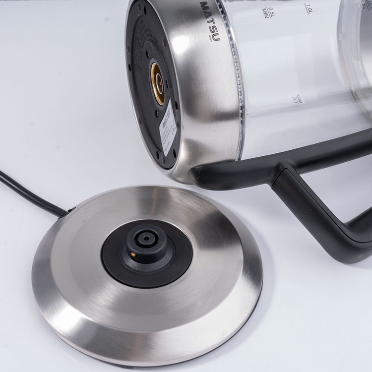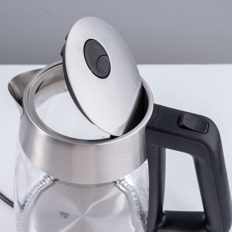 جنس بدنه از شیشه بوروسیلیکات و استیل ضدزنگ مقاوم/قابلیت چرخش کتری به صورت 360 درجه/دارای المنت توکار از جنس استیل ضدزنگ/دارای ال ای دی به رنگ آبی