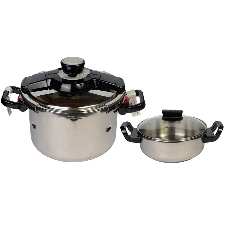 شاید شما هم از آن دسته آشپزهایی باشید که به پختوپز با زودپز دوقلو علاقه دارند. زودپز یا دیگ تحت فشار با آزادنکردن بخار آب غذا، درون محفظهی خود فشار را بالا میبرد. و یک زودپز 4 لیتری درون اون جا دارد که میتوانید در مواقعی که برای تعداد کمی غذا تهیه کنید از آن استفاده کنید. این موضوع باعث میشود که آب در دمای بالاتری بجوشد و این دمای بالاتر، غذا را زودتر میپزد. البته برخی افراد برای زودپزها خواصی هم برمیشمرند. بهعنوان مثال، معتقدند پخت غذا درون زودپز طعم آن را بهتر کرده و به اصطلاح باعث جاافتادن بهتر آن میشود. زودپز 8 لیتری و 4 لیتری تفال مدل Clipso Modulo ، از کارآمدترین زودپزهای حال حاضر است. زودپز تفال مدل Clipso Modulo با طراحی زیبا یکی از تولیدات جدید این شرکت است. زودپز کلیپسو تفال دارای گنجایش 8 لیتر و 4 لیتر است که مناسب برای یک خانواده با جمعیت زیاد است. زودپز کلیپسو تفال با 4 برنامه پخت کمک بسزایی در تهیه انواع غذا به کاربر میکند. این زودپز دارای یک دکمه برای راحت بازو بسته کردن درب میباشد. تایمر موجود در زودپز به زمان پخت غذا بستگی دارد و به راحتی میتوانید آن را تنظیم نماییداین زودپز با ظرفیت بالایی که دارد میتواند برای تعداد نفرات زیادی غذا تهیه کند. بدنه استیل و مقاوم این دستگاه میتواند فشار زیادی را تحمل کند و غذا در فشار بالا طبخ شود. سوپاپ اطمینان روی در زودپز مانع از بروز هرگونه حادثهای میشود. تخلیه بخار بهراحتی و با بلند کردن دسته مربوطه انجام میشود. طراحی در این زودپز طوری است که بهراحتی و با یکدست میتوان در آن را باز و بسته کرد. دستههای نسوز مدل کلیپسو قابل جابجایی بوده و میتوانند چرخیده و به بدنه بچسبند تا جای کمتری اشغال کنند. این مدل دارای یک سبد بخارپز نیز است که میتوان بهراحتی مواد غذایی را در فشار بالا بخارپز کرد بدون اینکه مواد ارزشمند آنها و ویتامینها از بین بروند. این زودپز مجهز به یک نمایشگر بر روی در است که با استفاده از دکمههای آن امکان استفاده از قابلیت تایمر هم ممکن شده است. سطح زیرین زودپز هم دارای طرحهای اختصاصی تفال است تا بیشترین بهرهوری را از حرارت دریافتی داشته باشد. تفال از معروفترین برندهای تولید لوازمخانگی است و محصولات این شرکت در تمام دنیا شناختهشده است. این زودپز دوقلو ساخت فرانسه میباشد.