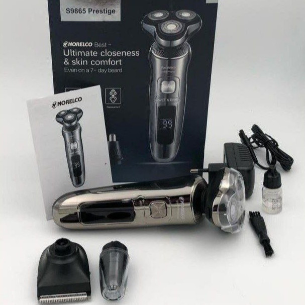 ماشین اصلاح سه کاره نورلکو مدل NORELCO S9865 PRESTIGE به دلیل کیفیت و عملکرد خوب و دارا بودن ویژگی ها و امکانات فوق العاده می تواند نیازهای آقایان را به خوبی برطرف کند. همچنین قیمت ماشین اصلاح بسیار مناسب و مقرون به صرفه می باشد. به طور خلاصه از ویژگی های این محصول می توان به تعداد 3 سری مختلف برای اصلاح نواحی مختلف، قابلیت شستشو زیر شیر آب و اصلاح موها به صورت خشک و مرطوب، صفحه نمایشگر برای نمایش میزان شارژ، قفل مسافرتی، تیغه های سه بعدی با اصلاح خیلی دقیق، قابلیت اصلاح با شماره صفر، خط زن و باتری قابل شارژ اشاره کرد.