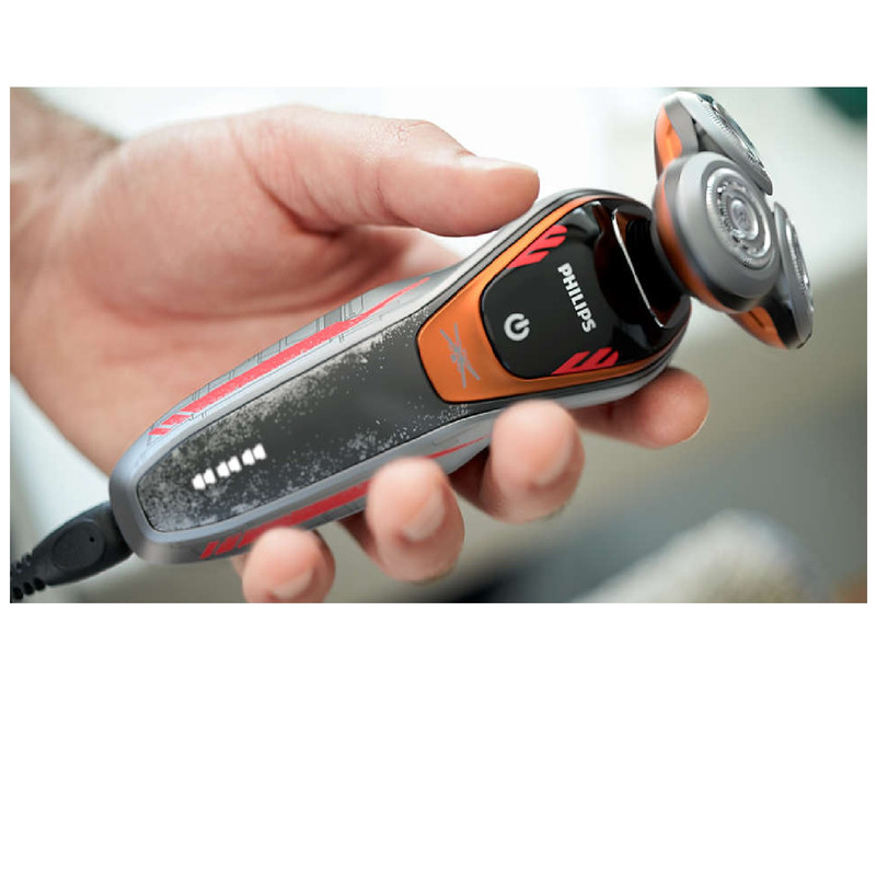 ماشین اصلاح «فیلیپس نورلکو » ( Philips norelco ) مدل «Sw6700» جزو سری 6700 این شرکت است که با داشتن تیغههای V-Track از ته موها را قطع میکند و پوستی صاف و بدون تهریش باقی میگذارد. این تیغهها به شکل حرف V انگلیسی طراحی شدهاند. هنگامیکه مو بین دو شاخ تیغه قرار میگیرد، به سمت قسمت انتهای V حرکت میکند و توسط لبهی بسیار تیز تیغه قطع میشود. این طراحی باعث میشود همهی موها در بهترین موقعیت برای برش قرار بگیرند و از پایینترین نقطه قطع شوند. به کمک این تکنولوژی، موهای بلند یا کوتاه و حتی موهای خوابیدهی زیر گردن از دست تیغهها رهایی ندارند. Philips norelco SW6700 دارای هشت درجه آزادی حرکت است و هنگامیکه ریشتراش روی صورت حرکت داده میشود، زاویهی مناسب انحنای صورت را به خود گرفته و همیشه در بهترین موقعیت نسبت به پوست قرار میگیرد. بهکمک این ویژگی با هربار حرکت سر ریشتراش روی صورت، موهای بیشتری قطع میشوند و این یعنی، اصلاح صورت در مدتزمان کمتری انجام میشود. طبق انتظاری که از Philips norelco SW6700 داشتیم، میتوان از آن در حالت خشک و مرطوب با فوم یا ژل اصلاح استفاده کرد. حتی میتوان ریشتراش را داخل حمام برد و زیر دوش آبگرم، اصلاحی نرم و لذتبخش داشت. طبیعتا برای استفاده از ریشتراش داخل حمام نمیتوان از برق استفاده کرد. Philips norelco SW6700 به باتری لیتیوم-یونی قابلشارژ مجهز شده است. با یک ساعت شارژکردن باتری میتوان تا پنجاه دقیقه بهشکل بیسیم از ریشتراش استفاده کرد. درصورتیکه هنگام اصلاح، شارژ ریشتراش تمام شود، کار اصلاح نیمهتمام میماند؛ اما جای نگرانی نیست، چون بهلطف باتری باکیفیت SW6700 میتوان با چند دقیقه شارژکردن آن، بهاندازهی یک اصلاح کامل از ریشتراش استفاده کرد. SW6700خطزنی بهصورت جداگانه دارد که باید جای تیغهی اصلی نصب شود. از ویژگیهای ظاهری Philips norelco SW6700 باید به طراحی ارگونومیک بدنه و نشانگرهای LED روی آن اشاره کرد. انحنایی که بدنهی ریشتراش دارد و لاستیک ضدلغزشی که در پشت آن استفاده شده است، دردستگرفتن و استفاده از آن را آسانتر و لذتبخشتر میکند.