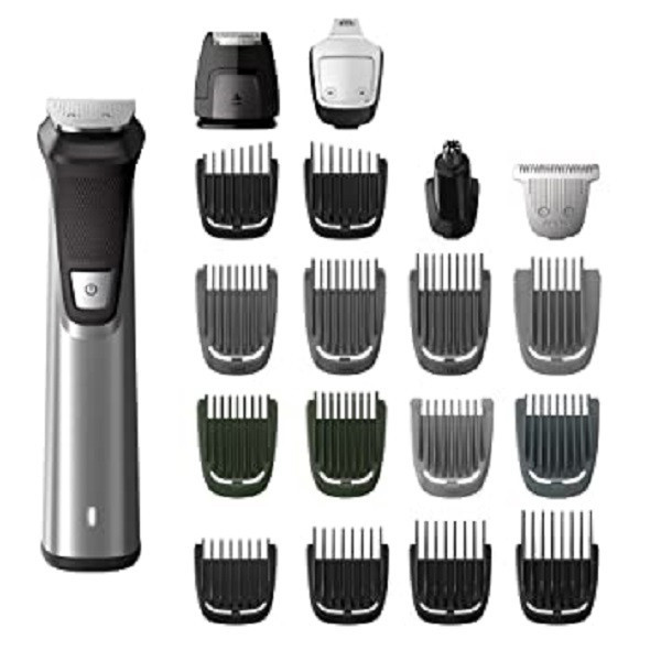ماشین اصلاح فیلیپس نورلکو سفارش امریکا مدل Mg7750 صورت، سر و بدن خود را با 23 قطعه کوتاه و حالت دهید 23 تکه برای تمام نیازهای پیرایشی شما: یک موبر فلزی، یک ریش تراش فویلی، یک دستگاه قیچی فلزی، یک دستگاه اصلاح بینی و گوش، یک دستگاه اصلاح موی بسیار پهن، 6 شانه کوتاه کننده مو، 3 شانه کوتاه کننده ریش، 2 شانه کوتاه کننده ته ریش، 2 عدد شانه های اصلاح بدن، محافظ ابرو، کیسه نگهداری و برس تمیز کننده کاملا قابل شستشو و قابل استفاده زیر دوش حمام و دارای تیغه Dual Cut تیغه دوبرابر تیز تر و خود تیز شونده باطری لیتیومی که 5 ساعت قابل استفاده میباشد