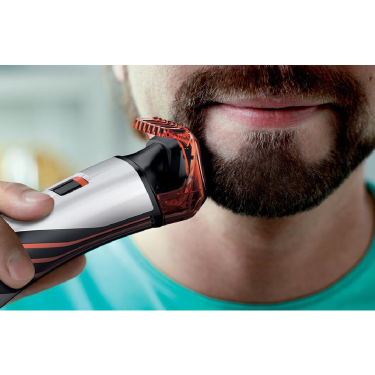 ماشین اصلاح صورت نورلکو مدل QS6140 با طراحی مناسب برای آقایانی است که می خواهند همراه با اصلاح صورتشان ته ریش هم داشته باشند و هر دو قابلیت را همزمان در یک دستگاه تجربه کنند. این ماشین اصلاح از هر دو سر قابل استفاده است؛ یک سر این دستگاه که بصورت تریمر برای اصلاح صورت طراحی شده است و دارای دو تیغه با پهنای 15 و 32 میلی متری به همراه شانه تنظیم شونده با سایز متغیر می باشد. با سری اصلاح تریمر دوکاره و قابل چرخش این دستگاه می توانید با توجه به نیاز خود از سمت پهن 32 میلی متری برای کوتاه کردن ریش و سبیل و از طرف باریک 15 میلی متری برای خط گیری و ایجاد استایل های مختلف استفاده نمایید. شانه متغیر نیز به کمک قفل چرخشی رو دستگاه در 12 سایز مختلف قابل تنظیم می باشد (از 0.5 تا 10 میلیمتر). در سر دیگر ماشین اصلاح نورلکو QS6140 شیور فویلی مجزا برای اصلاح صورت و گردن وجود دارد که با استفاده از آن می توان موهای صورت و گردن را به طور کامل شیو نمود. این دستگاه کاملا قابل شست و شو با آب می باشد و می توان هر دو سر آن را زیر شیر آب گرفته و شست و شو داد. قسمت تریمری دارای تیغه های خود تیز شونده و بدون نیاز به روغن کاری است که با داشتن سری گرد از خراشیده شدن پوست جلوگیری می کند و هیچ گونه حساسیتی برای پوست صورت ایجاد نمی کند. بدنه فلزی و ارگونومیک دستگاه نیز کنترل خوبی در حین اصلاح برای شما به ارمغان می آورد.