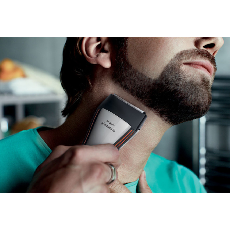 ماشین اصلاح صورت نورلکو مدل QS6140 با طراحی مناسب برای آقایانی است که می خواهند همراه با اصلاح صورتشان ته ریش هم داشته باشند و هر دو قابلیت را همزمان در یک دستگاه تجربه کنند. این ماشین اصلاح از هر دو سر قابل استفاده است؛ یک سر این دستگاه که بصورت تریمر برای اصلاح صورت طراحی شده است و دارای دو تیغه با پهنای 15 و 32 میلی متری به همراه شانه تنظیم شونده با سایز متغیر می باشد. با سری اصلاح تریمر دوکاره و قابل چرخش این دستگاه می توانید با توجه به نیاز خود از سمت پهن 32 میلی متری برای کوتاه کردن ریش و سبیل و از طرف باریک 15 میلی متری برای خط گیری و ایجاد استایل های مختلف استفاده نمایید. شانه متغیر نیز به کمک قفل چرخشی رو دستگاه در 12 سایز مختلف قابل تنظیم می باشد (از 0.5 تا 10 میلیمتر). در سر دیگر ماشین اصلاح نورلکو QS6140 شیور فویلی مجزا برای اصلاح صورت و گردن وجود دارد که با استفاده از آن می توان موهای صورت و گردن را به طور کامل شیو نمود. این دستگاه کاملا قابل شست و شو با آب می باشد و می توان هر دو سر آن را زیر شیر آب گرفته و شست و شو داد. قسمت تریمری دارای تیغه های خود تیز شونده و بدون نیاز به روغن کاری است که با داشتن سری گرد از خراشیده شدن پوست جلوگیری می کند و هیچ گونه حساسیتی برای پوست صورت ایجاد نمی کند. بدنه فلزی و ارگونومیک دستگاه نیز کنترل خوبی در حین اصلاح برای شما به ارمغان می آورد.