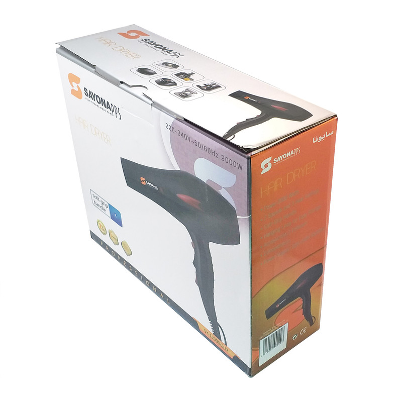 سشوار سایونا مدل SY-1200 GOLD این محصول با بهره گیری از موتور AC دارای قدرت پرتاب باد بسیار بالایی است و در دسته سشوار های حرفه ای قرار میگیرد.روی دسته این محصول 5 دکمه تعبیه شده که آنها تنظیم حرارت سشوار و سرعت دمیدن باد را به عهده دارند به این صورت که یک دکمه جهت ایجاد باد سرد به طور لحظه ای است.دو دکمه حالت کم و زیاد بدون حرارت، دو دکمه حالت حرارت کم و حرارت زیاد را انجام میدهد. همچنین درون بسته بندی 2 سری متمرکز کننده وجود دارد.