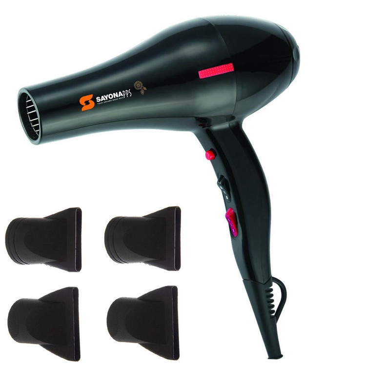 سایونا برند نام آشنا در تولید محصولات با کیفیت برقی است.یکی از این محصولات با کیفیت سشوار حرفه ای سایونا مدل ZH-98889-H با قدرت 2000 وات است. این محصول با بهره گیری از موتور AC دارای قدرت پرتاب باد بسیار بالایی است و در دسته سشوار های حرفه ای قرار میگیرد.روی دسته این محصول 3 دکمه تعبیه شده که آنها تنظیم حرارت سشوار و سرعت دمیدن باد را به عهده دارند به این صورت که یک دکمه جهت ایجاد باد سرد به طور لحظه ای است. یک دکمه 3 حالته که شامل : بدون حرارت، حرارت کم و حرارت زیاد میباشد. یک دکمه هم تنظیم 3 حالت باد است که شامل : خاموش، سرعت کم و سرعت زیاد میباشد .همچنین درون بسته بندی 4عدد سری متمرکز کننده وجود دارد.