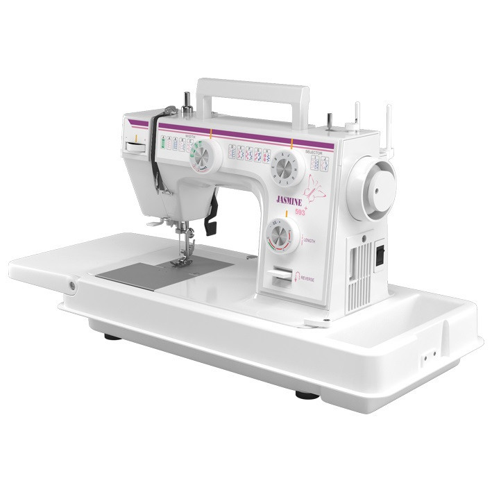 چرخخیاطی مدل «593» یکی از تولیدات حرفهای و از چرخخیاطیهای خانوادهی یاسمین شرکت «کاچیران» است. این چرخخیاطی زیبا با پشتیبانی از طرحهای دوخت مختلف، این امکان را برای مصرفکننده فراهم میسازد تا بتواند دوختهای متنوعی را با استفاده از این دستگاه انجام دهد. بدنه دستگاه آلومینیومی سبک و محکم است. این دستگاه میتواند عرض دوخت 0 تا 5 میلیمتر و طول دوخت 0 تا 4 میلیمتر را انجام دهد. مجموع انواع دوخت مدل 593 بهصورت ترکیبی تا 23 طرح میرسد. پدال این مدل الکترونیکی بوده و به کاربری آسانتر از دستگاه کمک میکند. این مدل امکان دوخت استرچ را هم دارد که برای پارچههای کشی و استرچ کاربرد و قابلیتی مهم است. چرخخیاطی کاچیران مدل 593 دسته مخصوص حمل تعبیهشده روی بدنه دارد. این چرخخیاطی باکیفیت قابلیت دوخت دو سوزنه هم دارد و سیستم ساده و راحت ماسورهپیچ در آن در نظر گرفتهشده است. قابلیت دوخت جادکمه، زیپ، دوخت قیطان و لب تو نیز در این مدل وجود دارد. کف تخت و صفحه افزاینده سطح برای خیاطی راحتتر در این مدل در نظر گرفتهشده است. گفتنی است این دستگاه دارای سوزن نخ کن اتومات و تأییدیهی ایمنی سازمان استاندارد و تحقیقات صنعتی ایران و همچنین CE اروپا و CB Scheme بوده و همهی لوازم الکتریکی در آن تحت استاندارد RoHs تعبیهشده است.