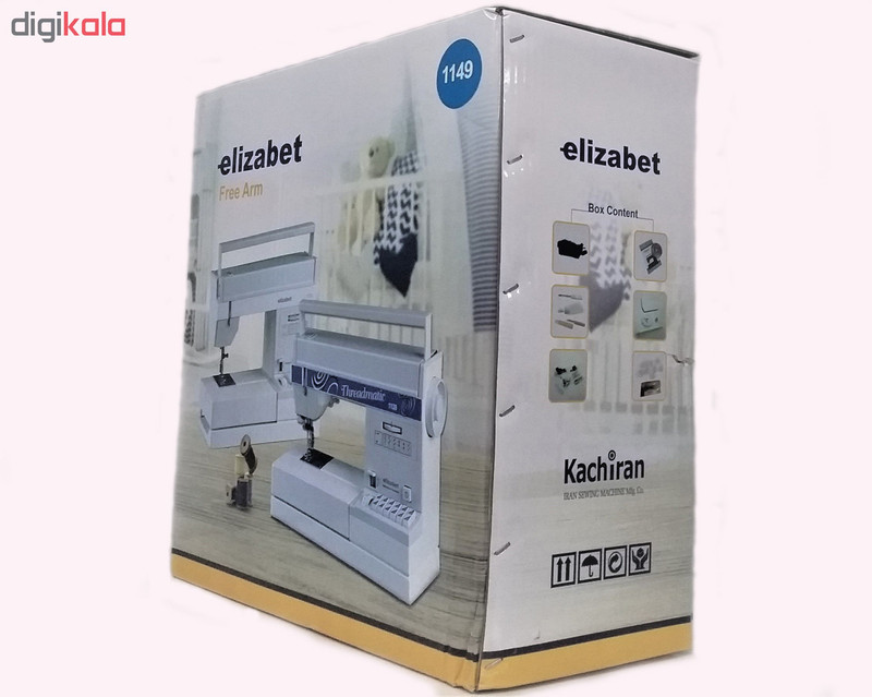 چرخخیاطی مدل الیزابت «1149» عرضه شده توسط شرکت «کاچیران» است و در سری چرخ خیاطی های صادراتی این شرکت قرار دارد. این دستگاه مجهز به لامپ LED است. محصولات کاچیران با پشتیبانی از طرحهای دوخت مختلف، این امکان را برای مصرفکننده فراهم میسازد تا بتواند تنوع گسترده ای از دوخت در اختیار داشته باشد. بدنه دستگاه آلومینیومی سبک و محکم است. این دستگاه میتواند عرض دوخت 0 تا 5 میلیمتر و طول دوخت 0 تا 6 میلیمتر را انجام دهد. مجموع انواع دوخت مدل الیزابت 1149 بهصورت ترکیبی تا 84 طرح میرسد. پدال این مدل الکترونیکی و دو وضعیته بوده و به کاربری آسانتر دستگاه کمک میکند. این محصول دارای جعبه مخصوص قطعات و لوازم نیز هست. این مدل امکان دوخت استرچ را هم دارد که برای پارچههای کشی و استرچ کاربرد و قابلیتی مهم است. چرخخیاطی کاچیران مدل الیزابت 1149 قابلیت دوخت دو سوزنه هم دارد. قابلیت دوخت جادکمه ،زیپ ،قیطان ، لب تو ، لول ، امکان دوخت حلقوی با کمک بازوی آزاد این دستگاه را نسبت به رقبایش برتری می دهد. گفتنی است این دستگاه دارای تأییدیهی ایمنی سازمان استاندارد و تحقیقات صنعتی ایران و همچنین CE اروپا و CB Scheme بوده و همهی لوازم الکتریکی در آن تحت استاندارد RoHs تعبیهشده است.