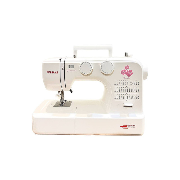 چرخ خیاطی مارشال مدل UEROTEX 9008A از محصولات یوروتکس (UEROTEX) مارشال و از تولیدات صادراتی و با کیفیت شرکت نیکو دوخت ماشین و به سفارش اروپا UERO میباشد. چرخ خیاطی مارشال تحت لیسانس ژاپن و با قطعات اصلی ژاپنی و تایوانی در ایران تولید و مونتاژ میگردد. شرکت نیکو دوخت ماشین نماینده انحصاری چرخ خیاطی و اتو پرسهای مارشال در ایران توانسته است با تکیه بر مهندسین با تجربه و دستگاههای فوق پیشرفته خود ، وبا کسب استانداردهای جهانی چرخ خیاطی ای را با نام تجاری مارشال سری یوروتکس (EUROTEX) به سفارش اروپا تولید کند و به چندین کشور اروپایی صادر نماید . مدل 9008A از سری محصولات یوروتکس شرکت مارشال است که مدل با کیفیتی است که دارای 36 مدل طرح حاشیه دوزی و قابلیت دوخت ترکیبی تا 75 مدل و گلدوزی بی نهایت با کارگاه گلدوزی است. این دستگاه پیشرفته تمامی امکانات خیاطی از قبیل ساده دوزی و زیگزاگ ، رفو و تیکه دوزی ، نوار دوزی و قیطانی دوزی ، سردوزی و لبه دوزی وزیپ دوزی ، دگمه دوزی و جا دکمه دوزی و ... را دارد . چرخ خیاطی مارشال مدل UEROTEX 9008A دارای دسته روی بدنه است که حمل و نقل دستگاه را آسان تر میکند. این دستگاه دارای لامپ LED و سوزن نخ کن اتومات است. این دستگاه دارای پایه های اصلی خیاطی و لوازم جانبی میباشد مدل +9008A Plus دارای جعبه محافظ میابشد.
