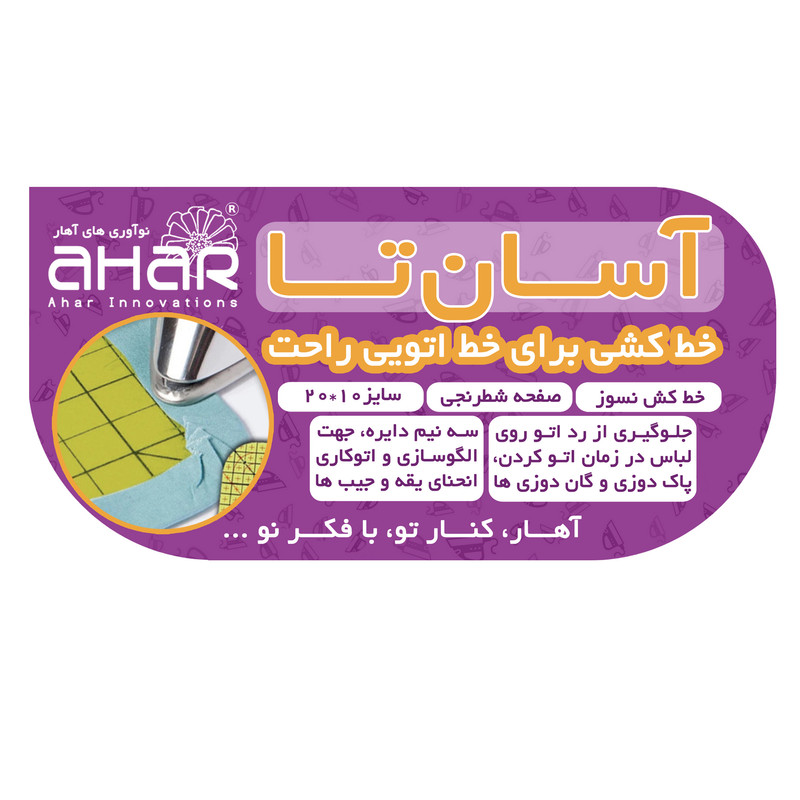 آسانتا خطکشی ظریف و منعطف و دارای سه لبه منحنی و یک لبه قائمه میباشد. جنس و چاپ این خطکش در برابر حرارت اتو کاملا مقاوم و نسوز است بنابراین براحتی میتوانید برای اتوکاری دقیق از این خطکش ویژه استفاده کنید. صفحه این خطکش ابعاد 20 سانتیمتر در 10 سانتیمتر دارد و با چاپ مخصوص و نسوز مدرج شده است. از این خط کش میتوانید برای اتوی لبه سجافهای منحنی، اتوی فارسی دوزی، اتوی نوارها، اتوی پاچه شلوارها و درزها استفاده کرد.