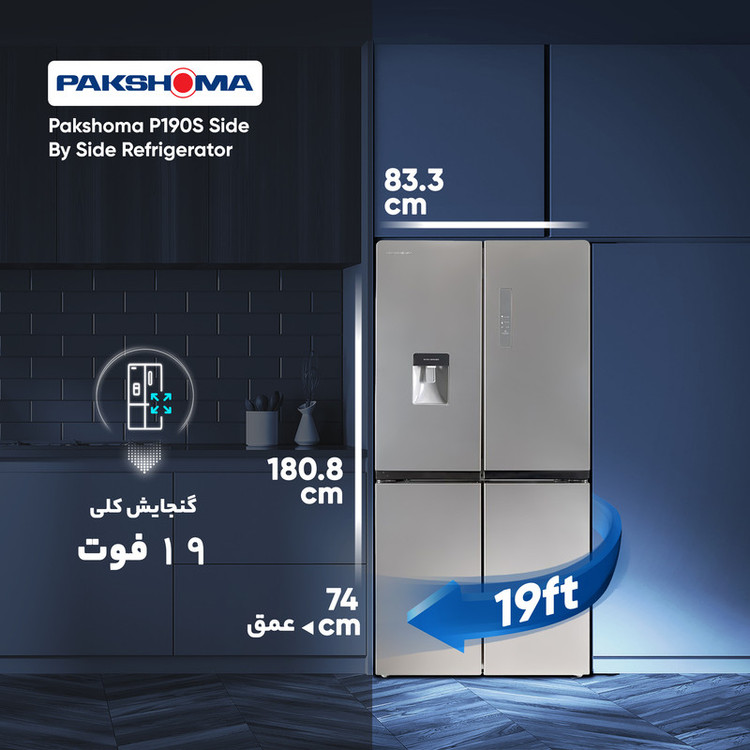 یخچال و فریزر ساید بای ساید 19 فوت پاکشوما مدل 4D RDP 530 W