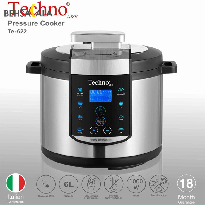 زودپز از وسایل ضروری هر آشپزخانه است، بهخصوص اگر فرصت کافی برای آشپزی نداشته باشید. زودپز «تکنو» مدل «Te_622» از محصولات کاربردی این برند است. این زودپز از طراحی ظاهری زیبایی بهره میبرد. قسمت بدنه از جنس استیل و دارای خاصیت ضدزنگ است. در قسمت جلوی بدنه یک پنل تنظیمات به زبان فارسی قرار دارد که با یک صفحهنمایش دیجیتال همراه شده است. وجود این صفحهنمایش کار با تنظیمات دستگاه را آسانتر کرده است. از طریق این پنل میتوانید از میان 15 منوی پخت، با توجه به نیاز خود یکی را انتخاب کنید. این مدل قابل استفاده بهعنوان پلوپز، زودپز، بخارپز، سوپساز، حلیمپز، ماستساز، سرخکن و... است؛ همچنین زمانسنج دستگاه میتواند تا مدتزمان 24 ساعت زمان پخت را در نظر بگیرد. یکی از نکات کلیدی هنگام خرید زودپز، توجه به امنیت دستگاه است. این زودپز با داشتن 9 حفاظ ایمنی این نکته را در نظر گرفته و به امنیت کاربران خود اهمیت داده است. این مدل میتواند میزان فشار تا 70 کیلو پاسکال را تحمل کند. بدنهی داخلی دستگاه از جنس نچسب است و از دو لایهی تفلون مرغوب تشکیل شده است که کار شستوشوی دستگاه را آسان میکند. ضخامت کم این لایه باعث سبکی و راحتی کار با دستگاه میشود. زودپز Te_622 با ظرفیت 6 لیتر میتواند در هر بار استفاده بهراحتی غذای تعداد زیادی از افراد را پخته و آماده کند.