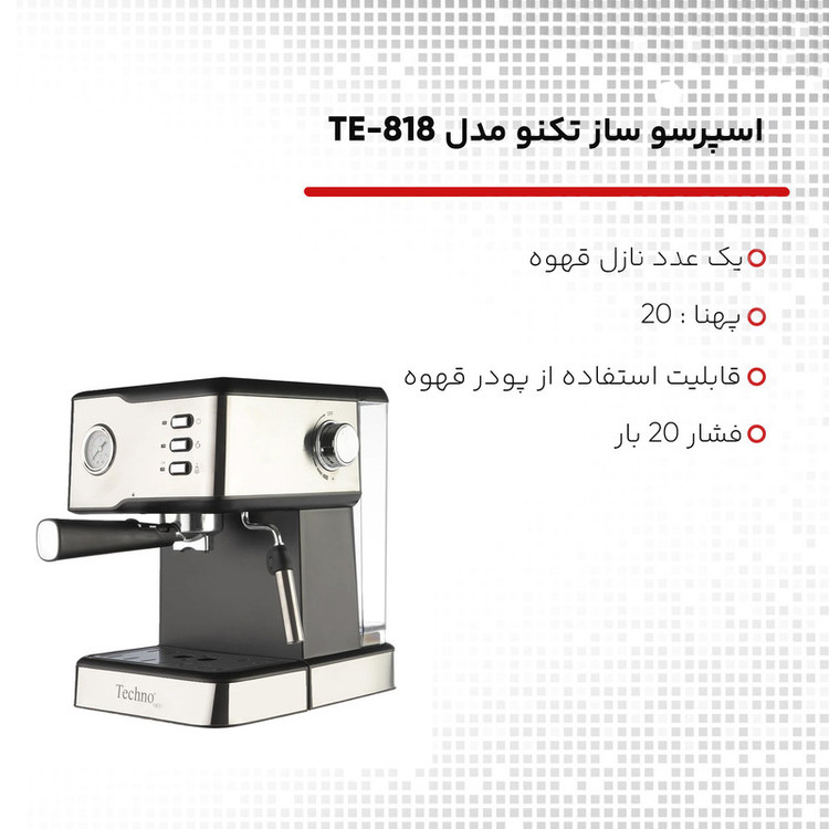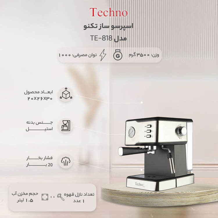 امکانات اسپرسوساز: سیستم کاپوچینو ساز , سینی چکه گیر , نازل بخار