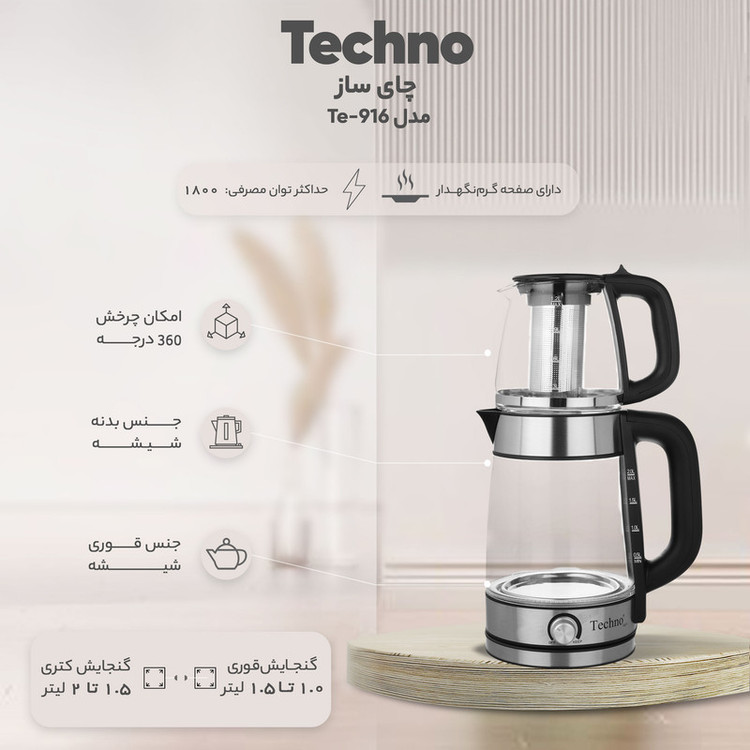 محدوده ظرفیت قوری: 1.0 تا 1.5 لیتر