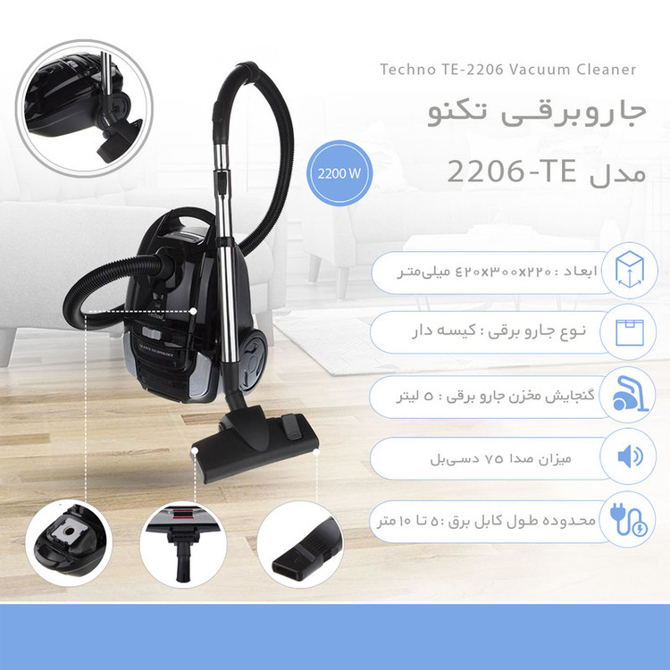 لولهی جاروکشی 1.5متری فیلتر قابل شستوشو موتور پرقدرت و کمصدا